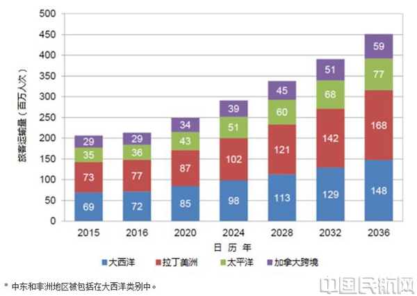 大西洋和加拿大地区都是成熟市场,对所有航空公司20年期间乘机旅客数将分别平均增长3.7%和3.6%。目前还不清楚叙利亚难民危机和恐怖主义威胁是否会影响2016年及以后的旅行需求。