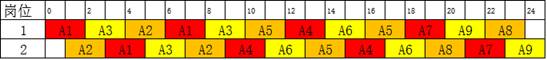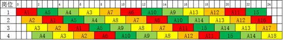 因此,岗位开放的数量发生变化时,管制员的轮班次序也随着发生变化。一般情况下,夜间是航班流量较小的时候,可以考虑减少岗位数量,部分时段还可以延长执勤时间,合理安排管制员休息;而白天是航班流量较大的时候,可以考虑增加岗位数量,部分时段还可以缩短执勤时间,缓解管制员的工作负荷。
