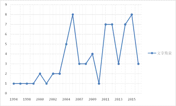 本文将统计收集的70篇文献按时间顺序转化为年代分布图。从图中可以看出,在2004年以前,退出机制的研究处于摸索阶段,2004年以后,期刊论文有质和量的增长。2004年是全面落实党的十六大和十六届三中全会精神的重要一年,也是实现“十五”计划目标的关键一年。各地从各自实际情况出发,加大了国有企业的改革力度,进入了加快国有经济布局结构调整和建立现代产权制度为重点的新阶段。