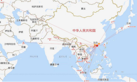 潮汕地区是著名的侨乡,在东南亚有超过600万的潮汕籍华侨,具有充沛的市场需求,同时潮汕机场地处我国东南沿海,4小时飞行圈基本覆盖如泰国曼谷、新加坡、马来西亚吉隆坡、印尼雅加达等大部分东南亚国家,对于航空公司来讲,具有非常好的地理位置以及先天条件,适合作为我国北方城市至东南亚航线的经停点。