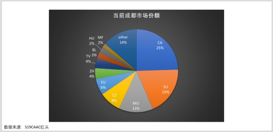成都双流国际机场是中西部地区拥有洲际( 远程) 航线最多、唯一覆盖五大洲的机场,国际航空枢纽初具雏形。当前,全球旅客吞吐量排名前50位机场的主基地公司市场平均份额在40%左右,而川航与国航西南两家主基地航空公司在成都的市场份额均低于30%。
