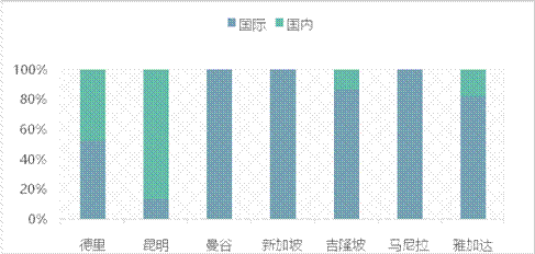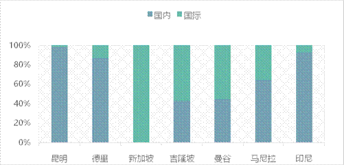 表2:2020年昆明与南亚东南亚主要机场国内/国际客运航班占比