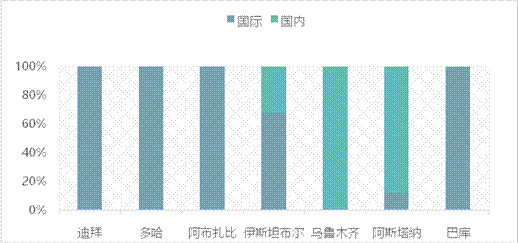 表9:2019年12月-2020年12月乌鲁木齐与中亚西亚主要机场客运国内/国际占比