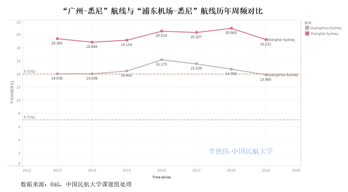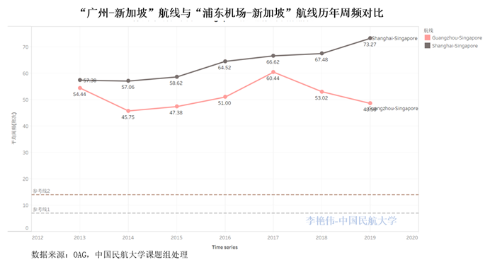东南亚、澳新区域一直是广州枢纽的优势市场,但浦东机场在东南亚的核心枢纽的网络厚度也要优于广州枢纽。例如通往悉尼机场、新加坡机场的网络厚度也要优于广州出发的航班。
