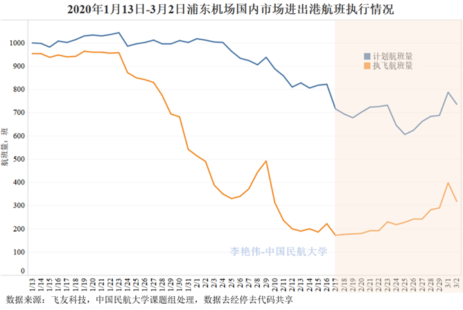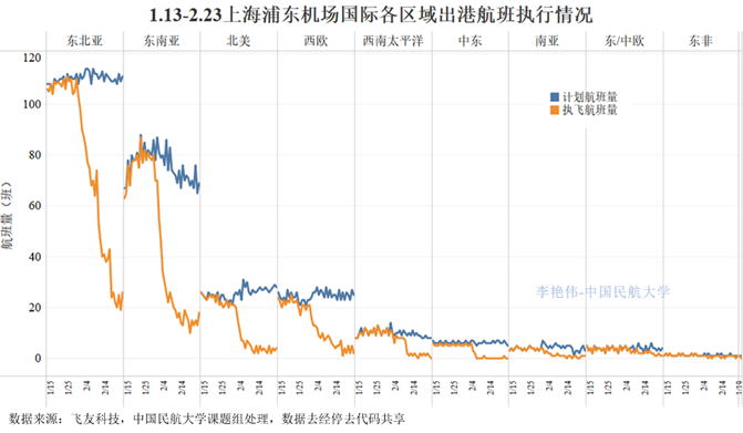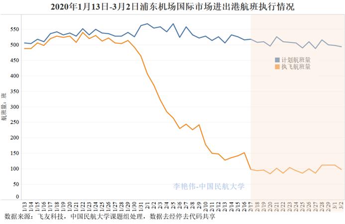 从1月13日-3月2日浦东机场国际航班执行情况来看,国际航班的恢复没有国内航班恢复快。浦东机场国际航班从近两周执行情况看,依然处于低谷中。