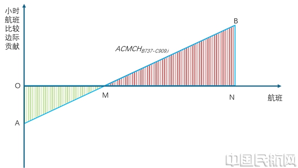 当ACMCB737-C909,i=0时,表明用波音737飞机和C909飞机运营i航班创造的边际贡献相同。可以保持不变,也可以调整机型;