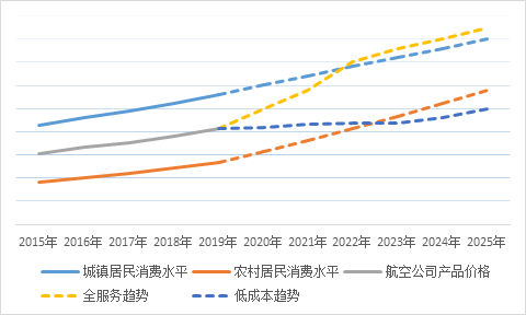 图4: 航空公司产品价格与居民消费水平提升趋势