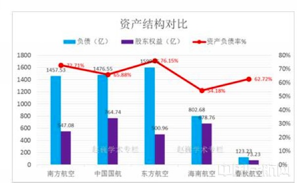 三大航国航净资产最高,负债率只有65.88%。