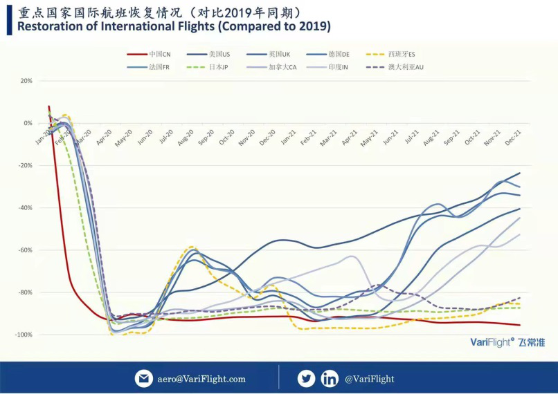 新冠病毒疫情自2020年初开始爆发至今,几经反复延续,现阶段在全球范围内还未观察到明显的消退迹象。疫情在国内外对各行各业影响极为巨大,以航空公司为代表的全球民航业受到疫情冲击尤为严重。各国防疫政策差异引致全球民航业恢复进程呈现分化走势。近期笔者观察到:北美民航业发展已经进入到后疫情时代,2021年下半年美国航空公司国际客运量快速恢复,尤其今年一个半月内美国国内客运量更是超过疫情前水平。预计随着以德法为代表的欧盟和英国在防疫政策方面的宽松举措出台,预计今年上半年欧洲民航业也将随之步入后疫情时代(趋势参见图:疫情爆发后重点国家国际航班恢复情况)。我国民航业是否调整现行“五个一”国际客运航班政策,短期内大幅开放国际旅客运输市场是不确定的,这需要在符合我国整体防疫工作大局的基础上做出行业政策调整。近日,发改委等14部门发布《关于促进服务业领域困难行业恢复发展的若干政策》,出台5项具体举措纾困扶持民航业市场主体,助力民航业整体复苏。但是没有国际客运市场的普遍复苏,国内客运运力“无限供给”将严重制约平均票价常态回归,直接导致我国航空公司盈利能力难以恢复。笔者认为:全国性防疫政策转向与否的重要观察和研判窗口期将在3月中下旬。新冠病毒对人类影响趋弱甚至消失时间点的到来或许与其出现一样,都是那么突如其来。人类认知能力相比自然界还是渺小的,短期内我们无法认知病毒是怎么来的,当然也无法判断病毒是怎么走的。当下,我们正视和理解疫情蔓延偶发性和行业发展必然性之间的辩证逻辑关系是极为必要的和迫切的,疫情虽还在当下流行,但其终归是阶段性的。这就引来了笔者同问:“疫情将逝,中国民航准备好了吗”?