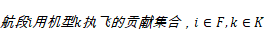 表示对于将要起飞的j航班,在其起飞前从该机场出港的航班集合;(4)-(6)表示每个过夜基地飞机的起飞数量与过夜数量要相等并且要等于机队各机型的飞机数量;(7)表示每个航段执飞频率要在给定的范围内;(8)表示繁忙机场时刻量要等于给定的时刻量;(9)表示同一航段各航班间起飞时刻分布要满足给定要求。