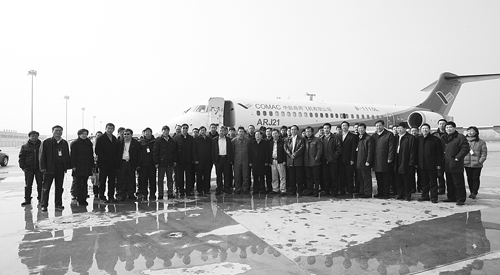 配合ARJ21-700飞机自然结冰试验,民航新疆管理局领导和相关人员与审查组成员合影。(程冰琦/摄)