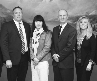 庄丽(左二)在完成国王350飞机3份补充型号合格证认可审查工作后与申请人合影。(戚超/摄)